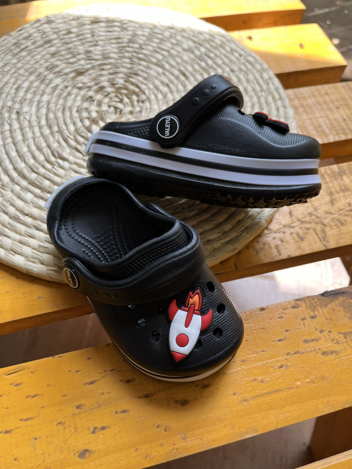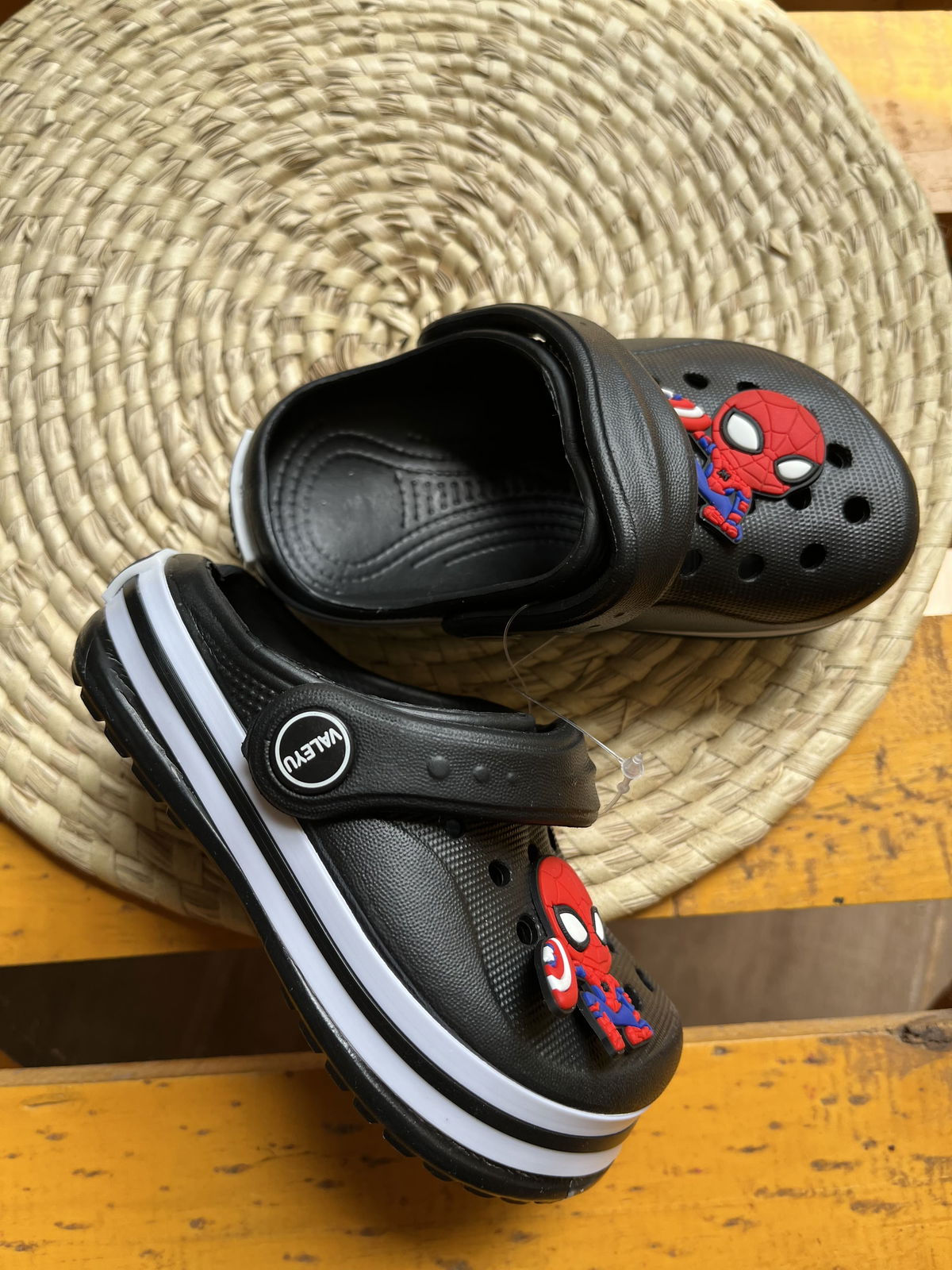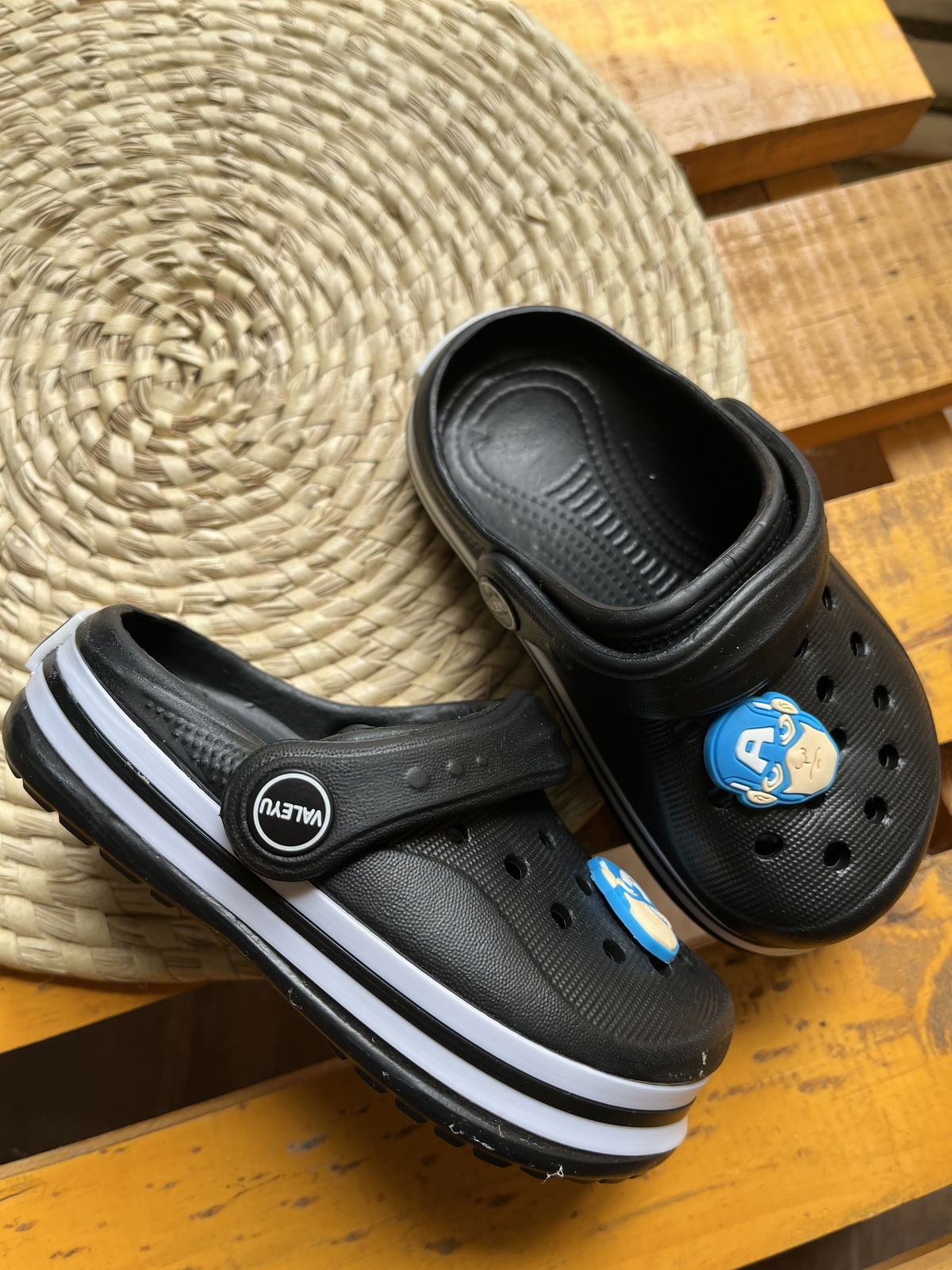 Crocs livianos con pines de personaje, ideal para combinar con cualquier look.